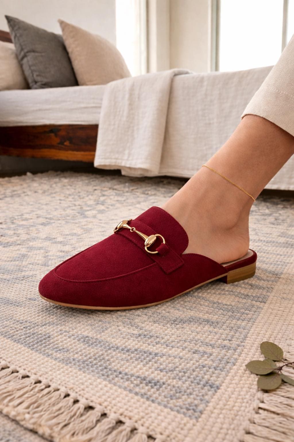 Apportez une touche d'élégance et de confort à votre quotidien avec ces magnifiques mules marocaines en daim, entièrement fabriquées à la main. Parfaites pour toutes les occasions, ces chaussures sans talon se distinguent par leur bout pointu raffiné et leur détail métallique élégant.