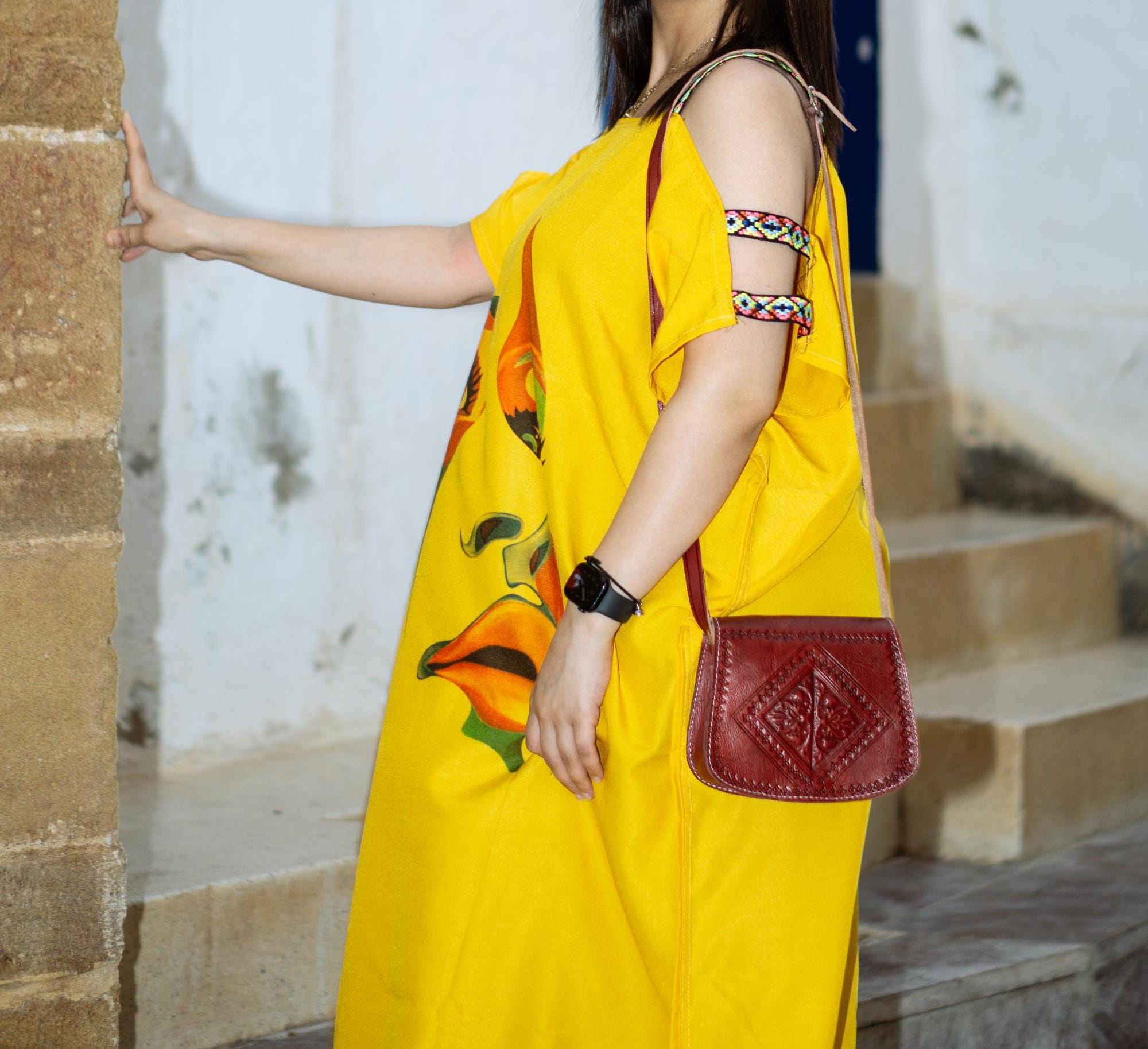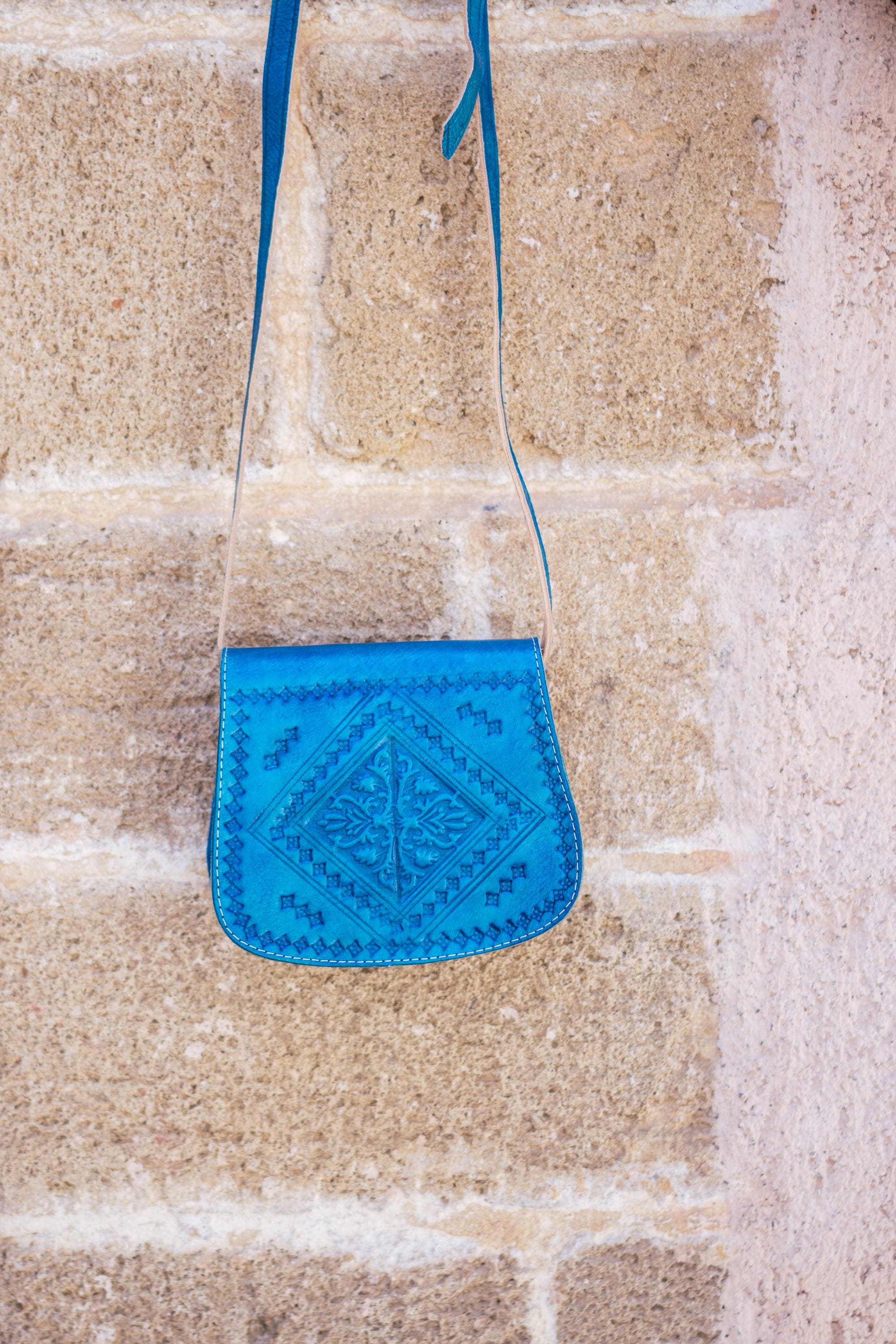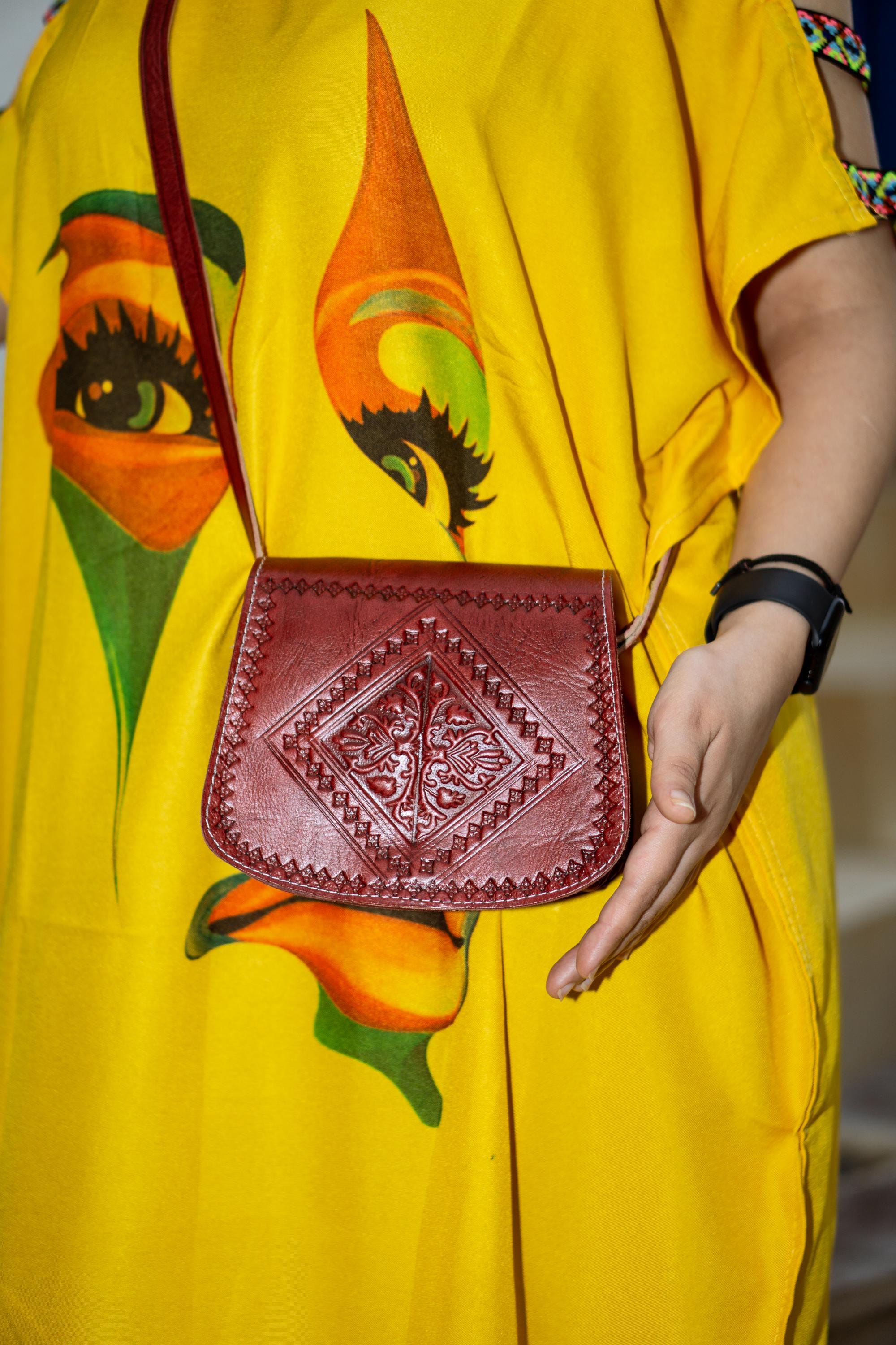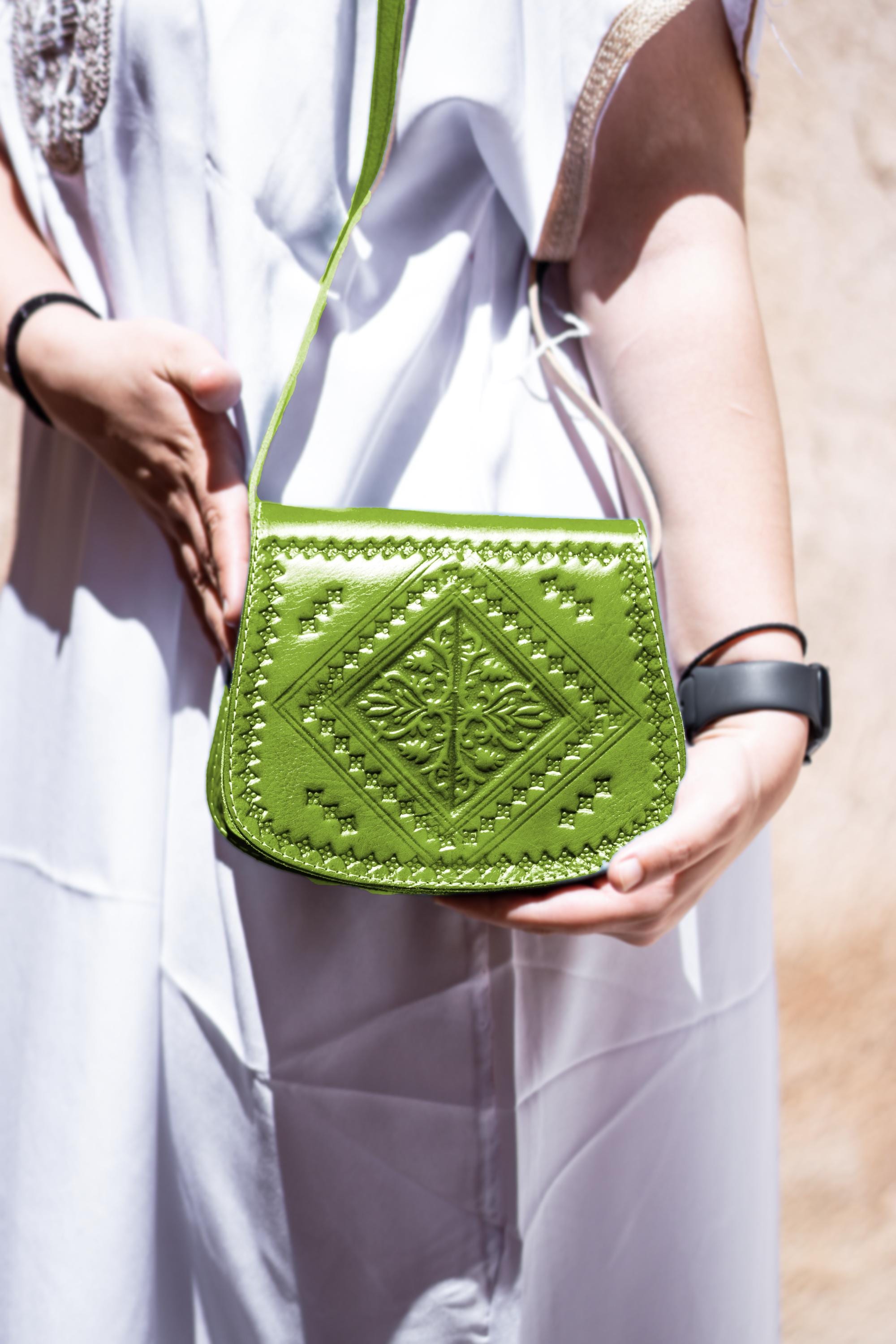 Small Moroccan Leather Crossbody Bag – Hand-Embossed Boho Shoulder Purse – Authentic Satchel