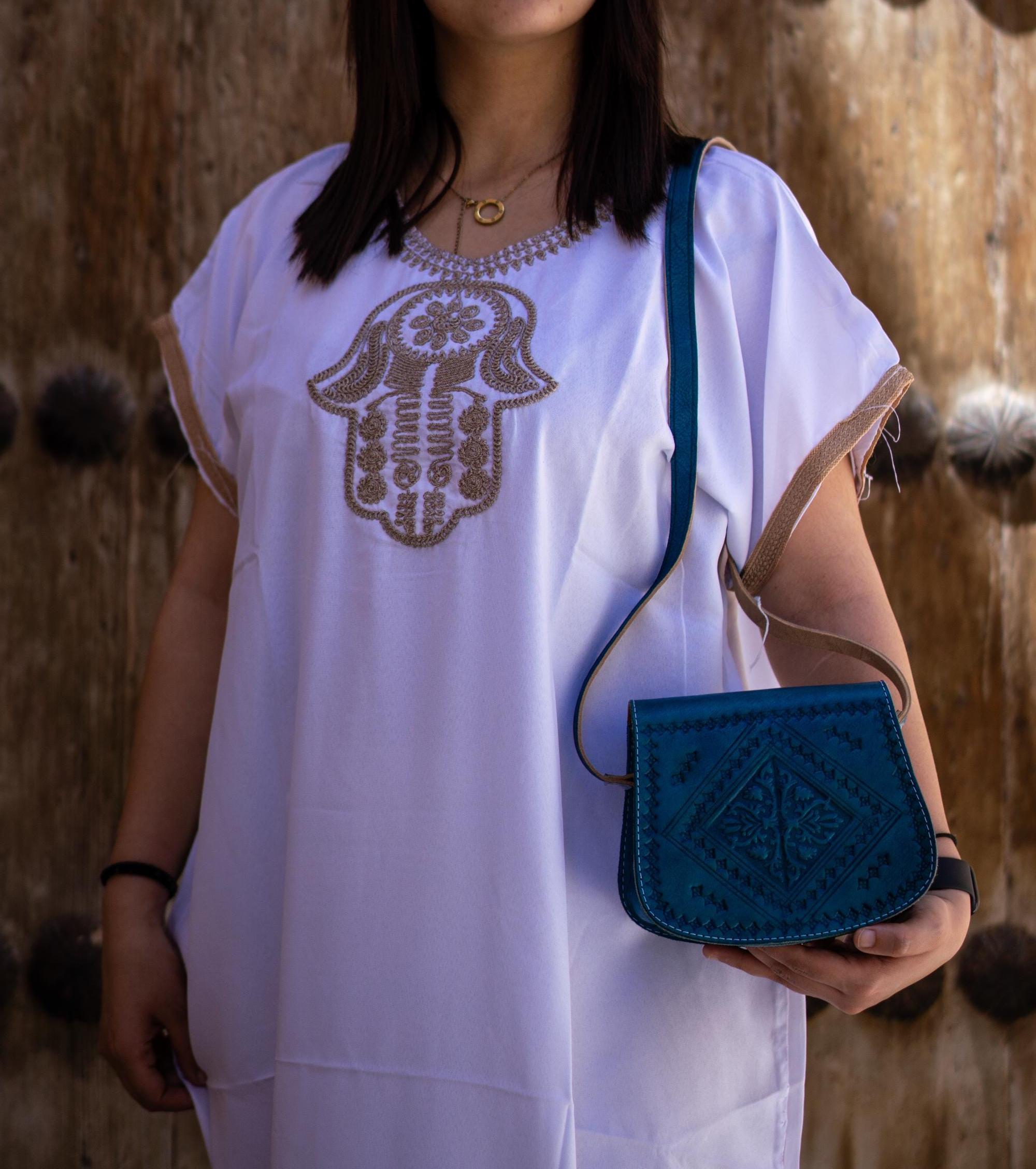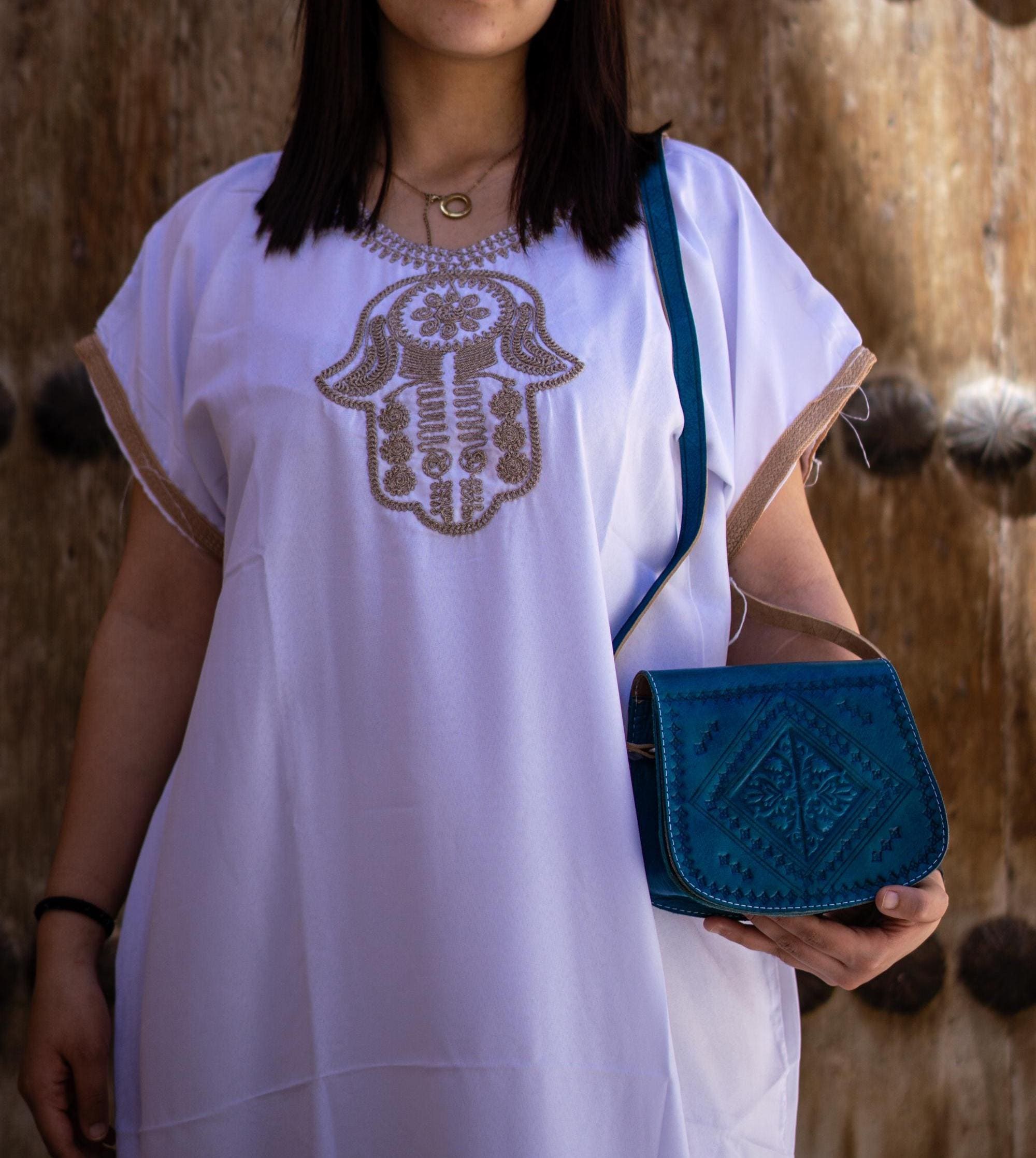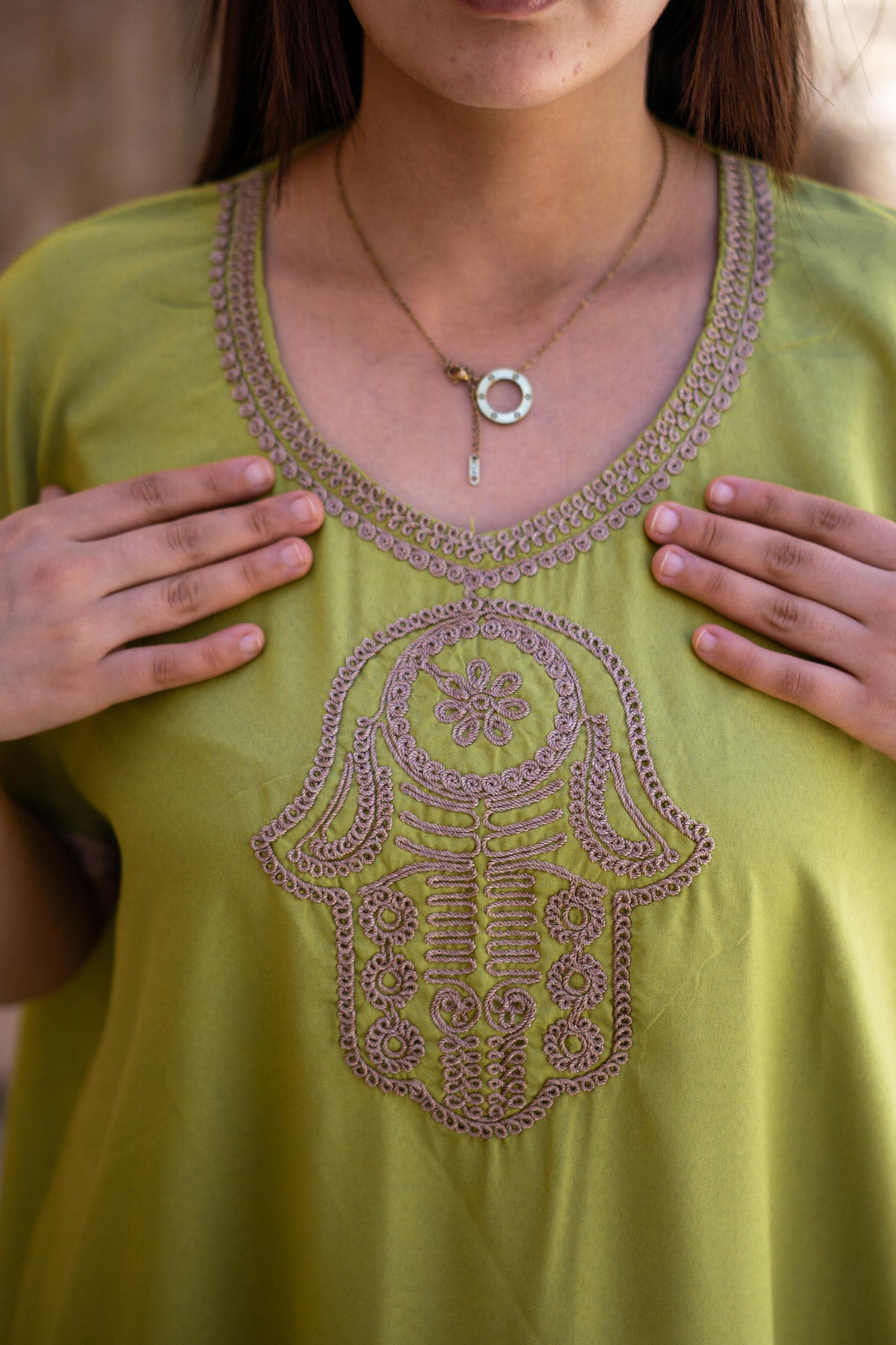 Embrace positive energy and effortless style with our handmade Moroccan Hamsa Kaftan! 🌿✨